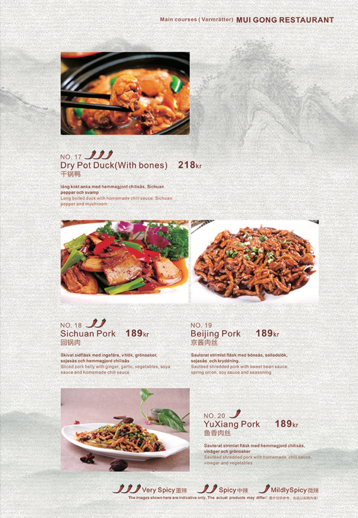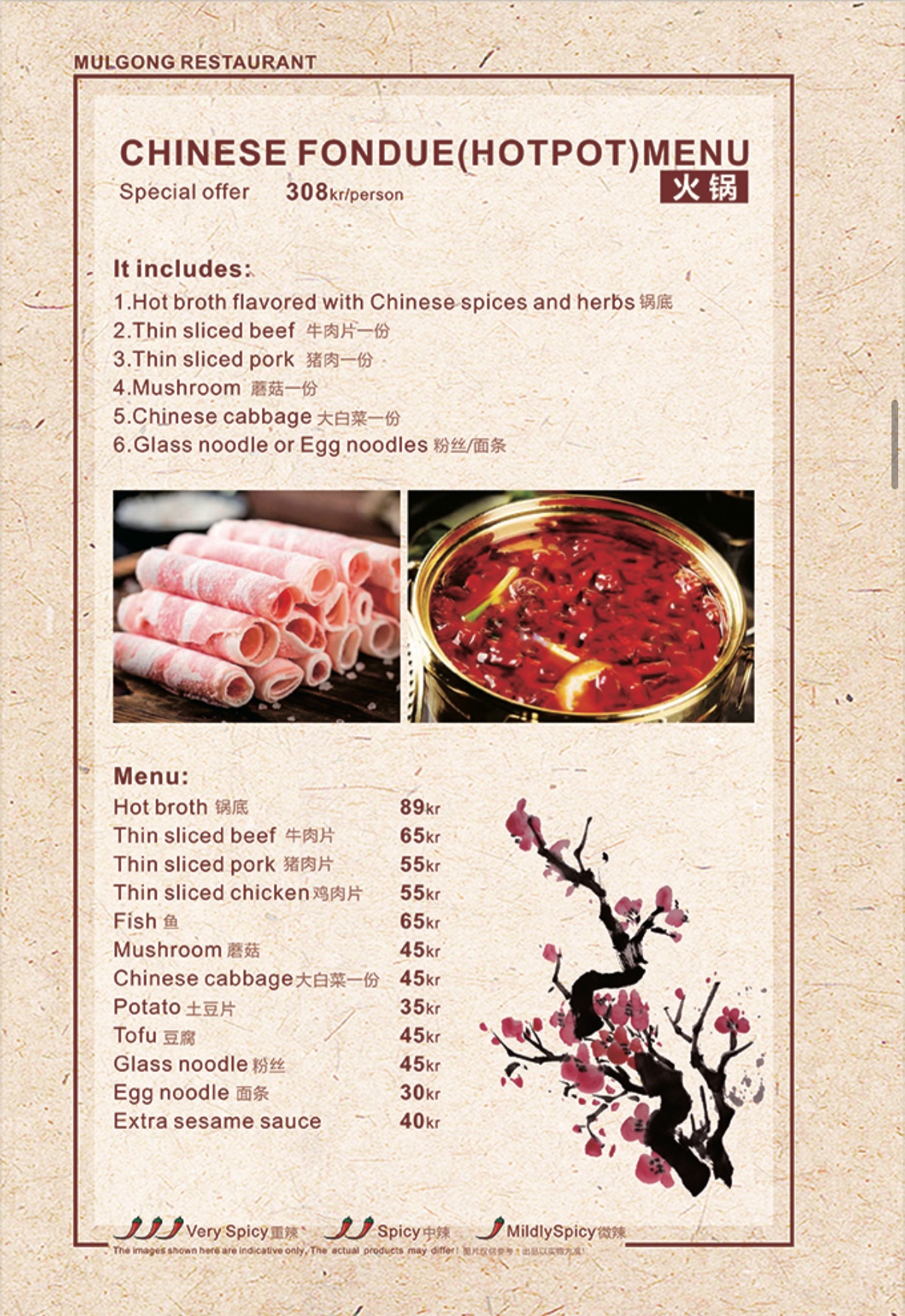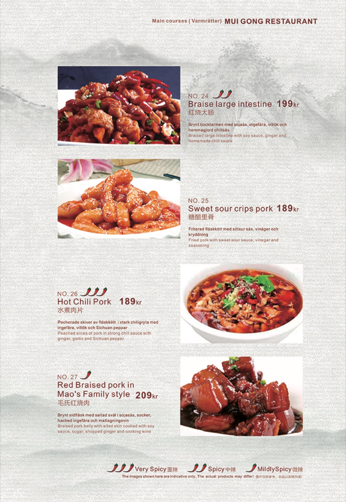 A La carte 菜单